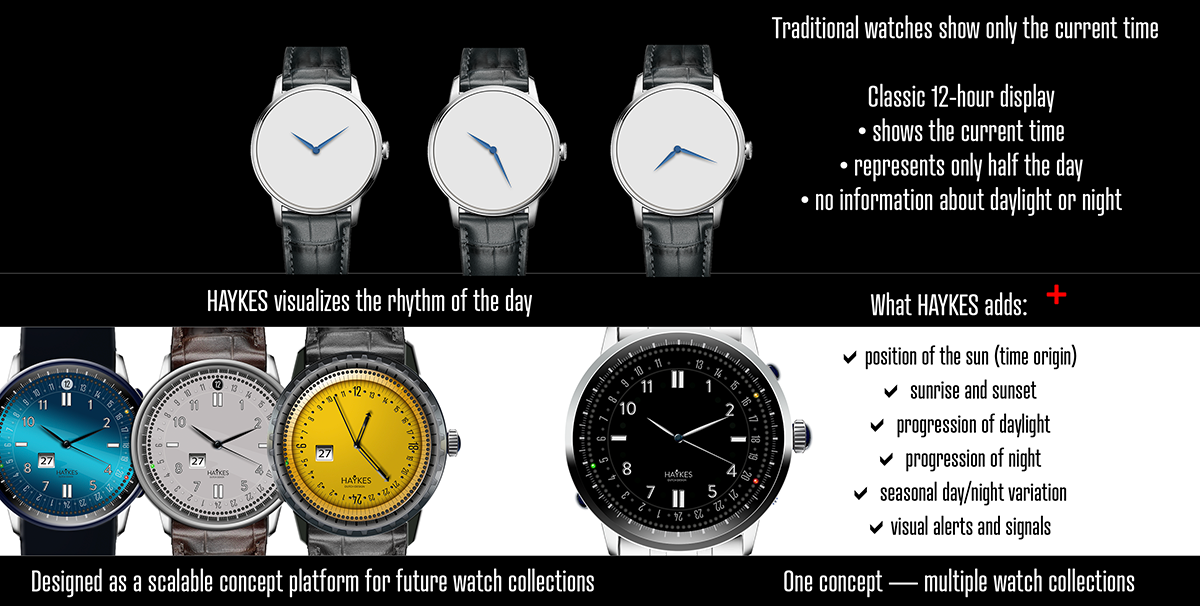 HAYKES solar analog watch concept presents manufacturers a way to introduce visible, intuitive innovation without abandoning analog watchmaking principles.